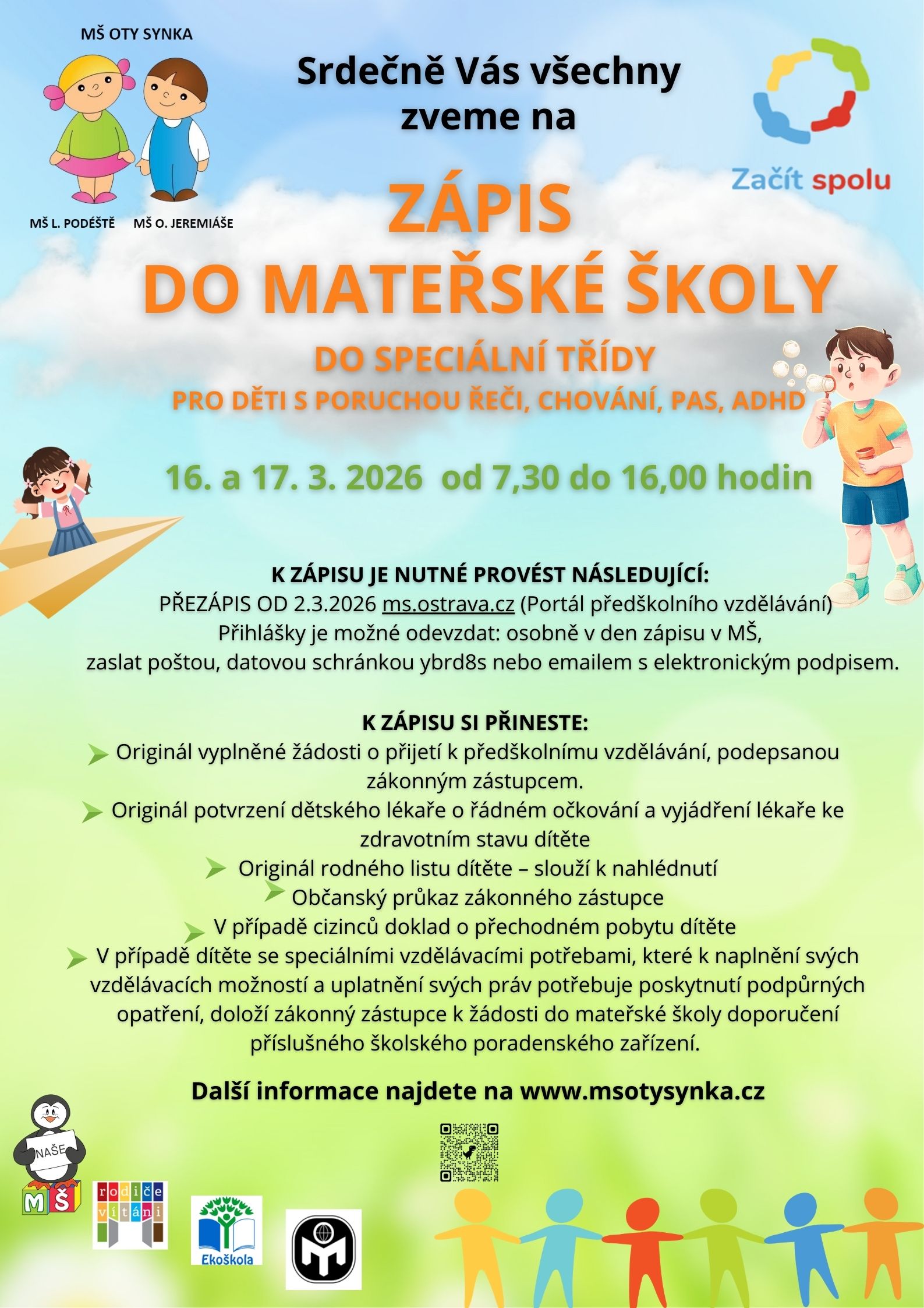 Zápis do mateřské školy – speciální třída (pro děti s poruchou řeči, chování, PAS, ADHD)